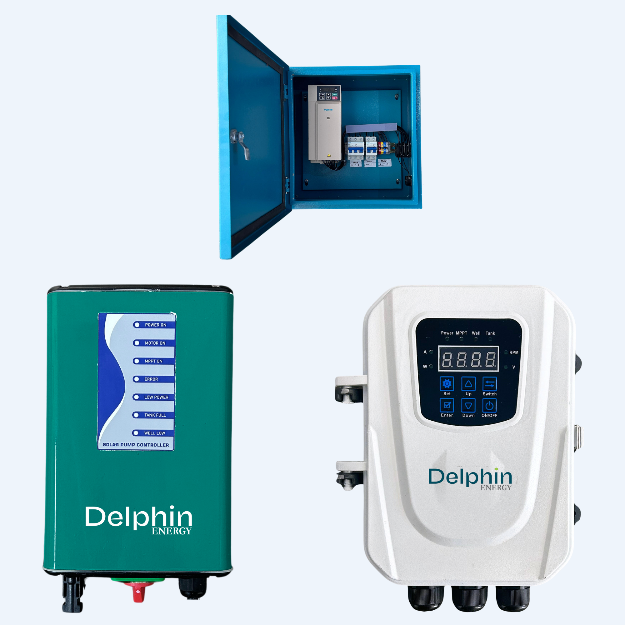 - Converts the DC power generated by solar panels into AC power to operate the pump.